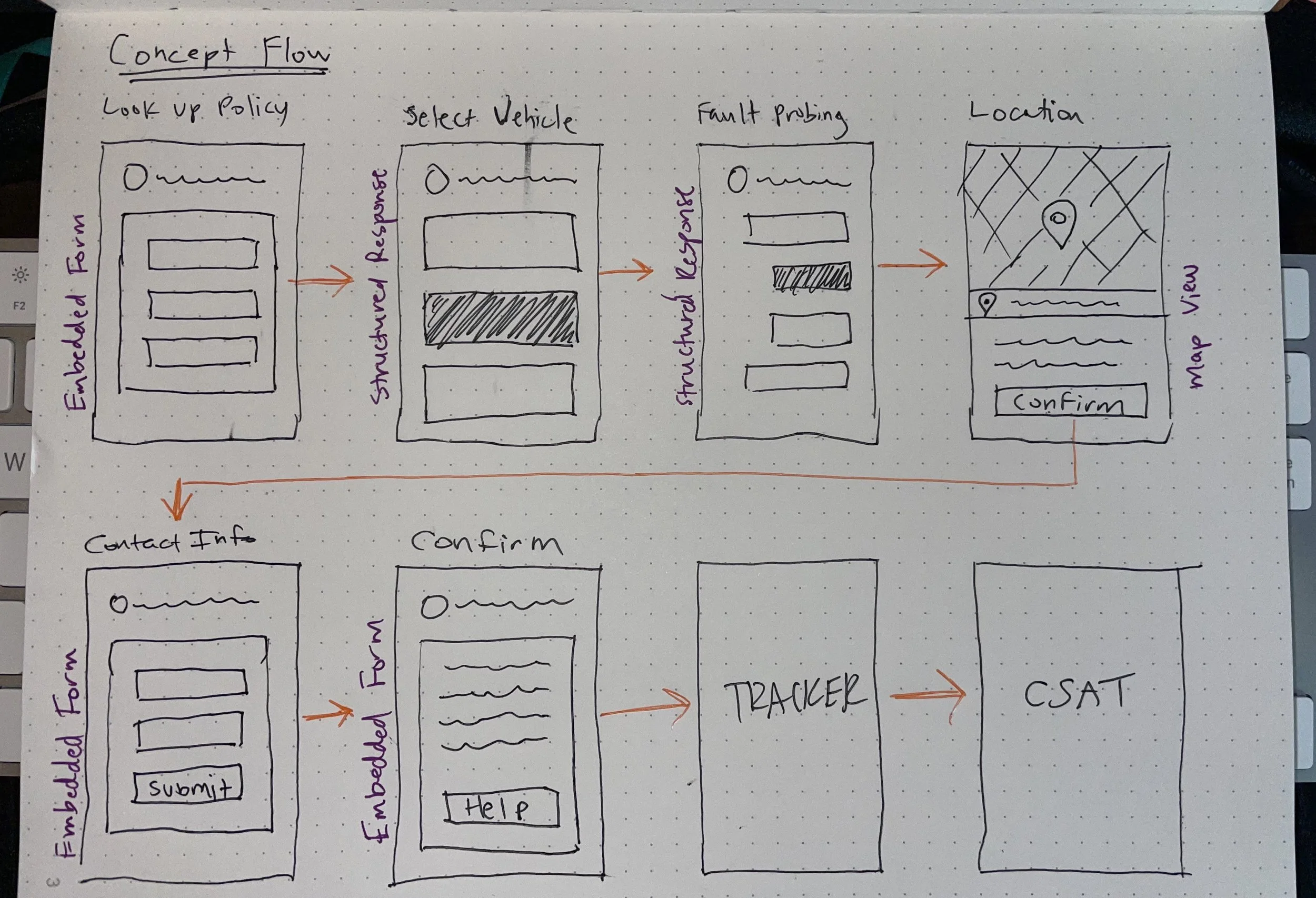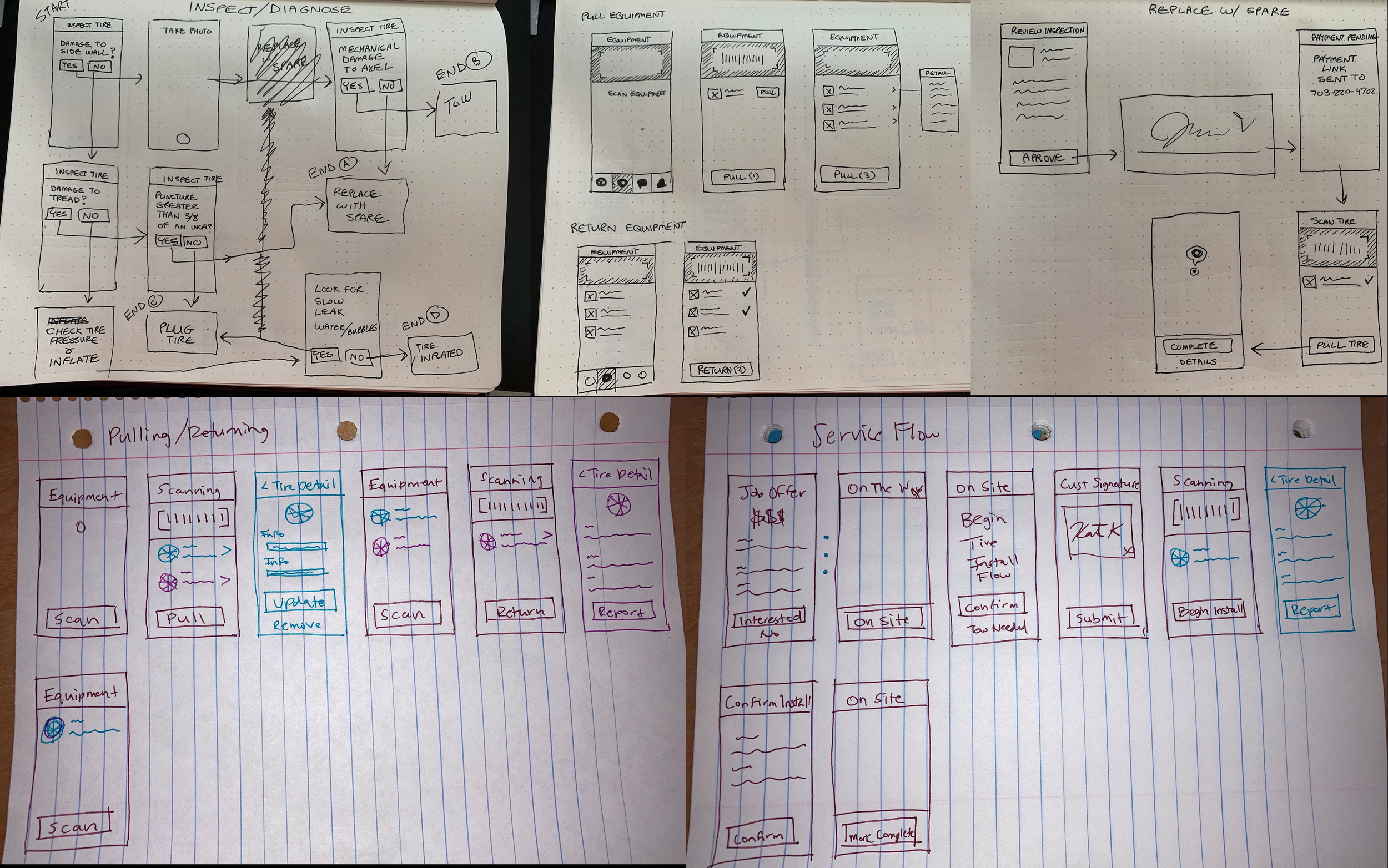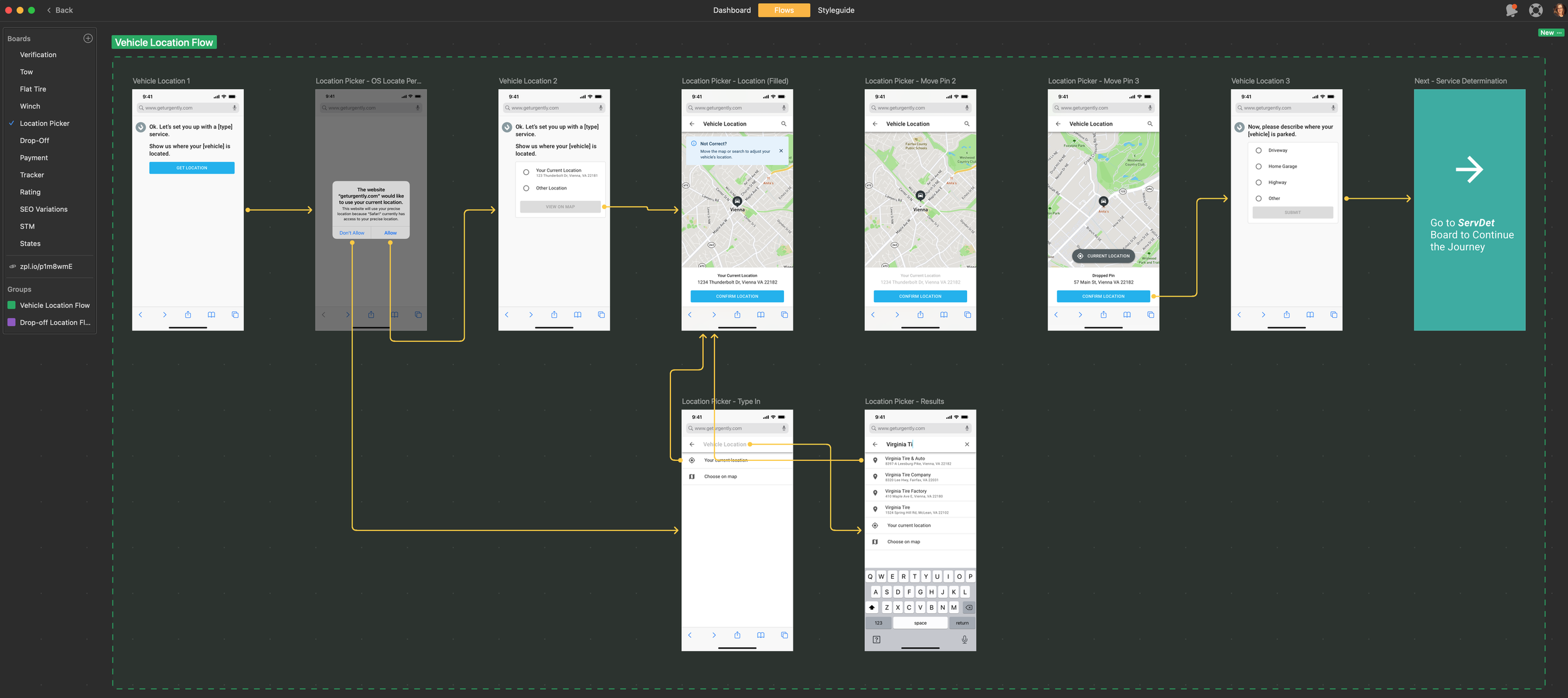 We had a contract to provide roadside services to BMW and they requested a new Emergency Tire feature for their service providers. My product manager and myself met with their team to formulate a plan of execution, starting with requirement documentation. From there I designed user flows to help their team visualize early.